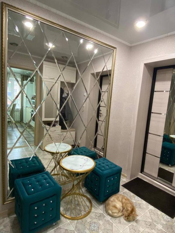 Для украшения использовалась зеркальная плитка формы вытянутый ромб серебряного цвета.