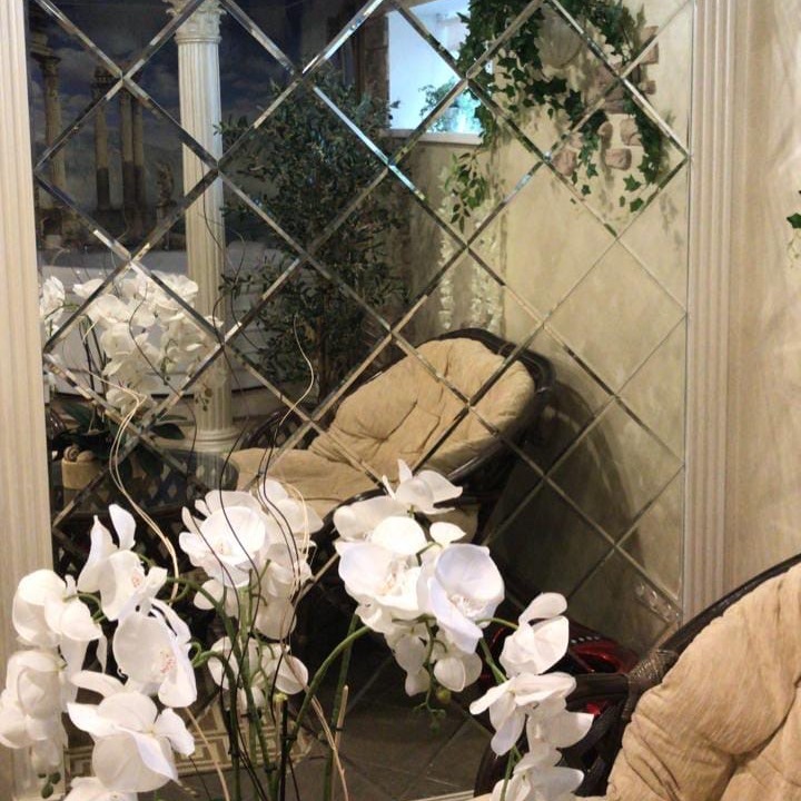 Использована серебряная зеркальная плитка «вытянутый ромб».